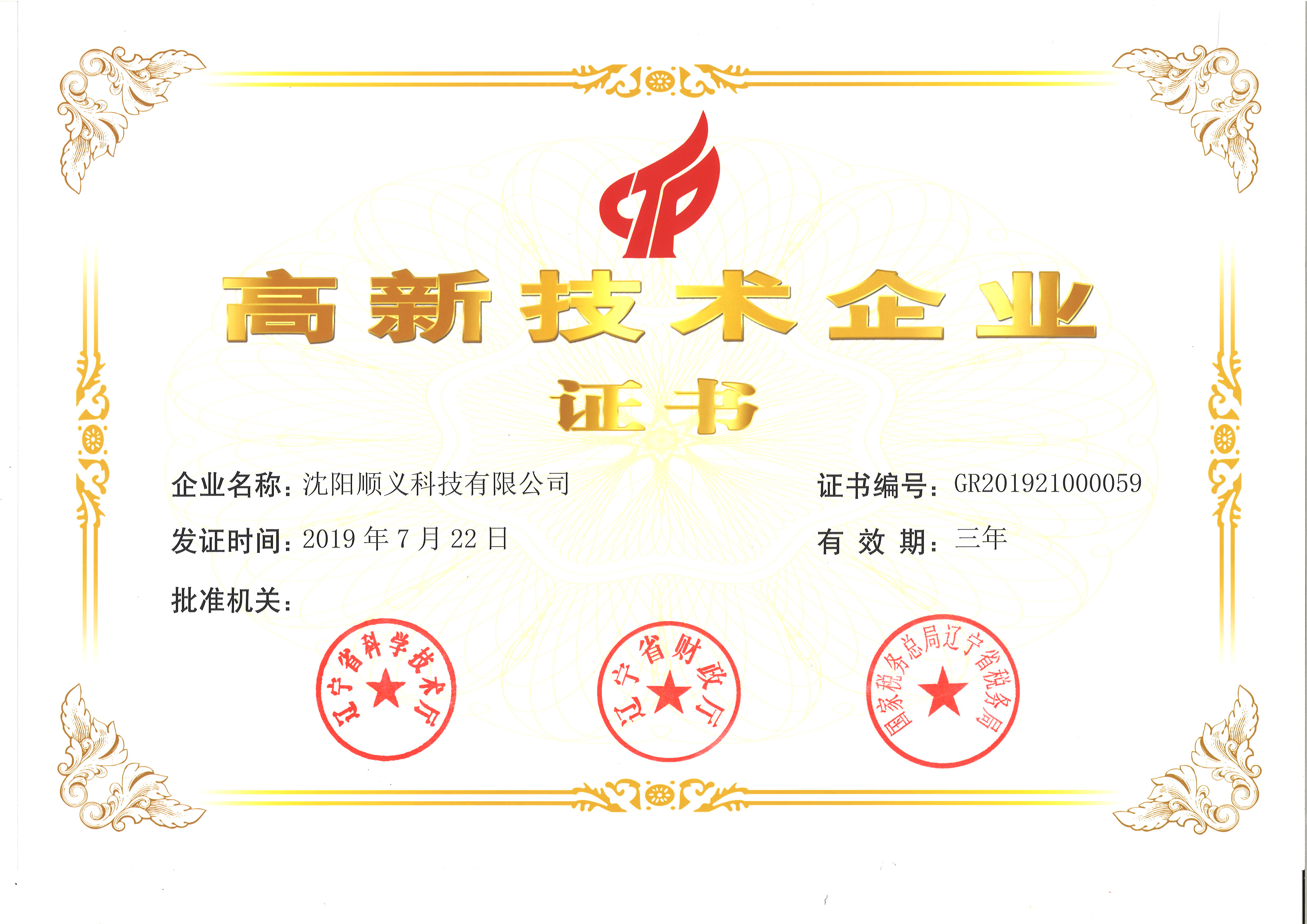 高新技術(shù)企業(yè)證書